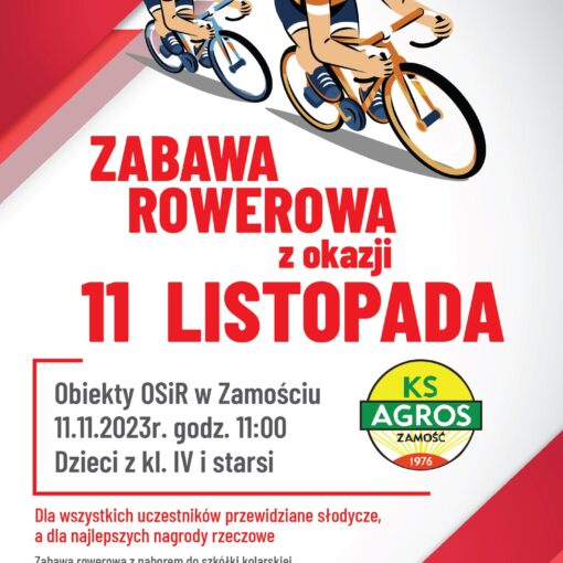 W dniu 11.11.2023 r. na obiektach Ośrodka Sportu i Rekreacji w Zamościu odbędzie się Zabawa Rowerowa z okazji 11 listopada. Serdecznie zapraszamy […]